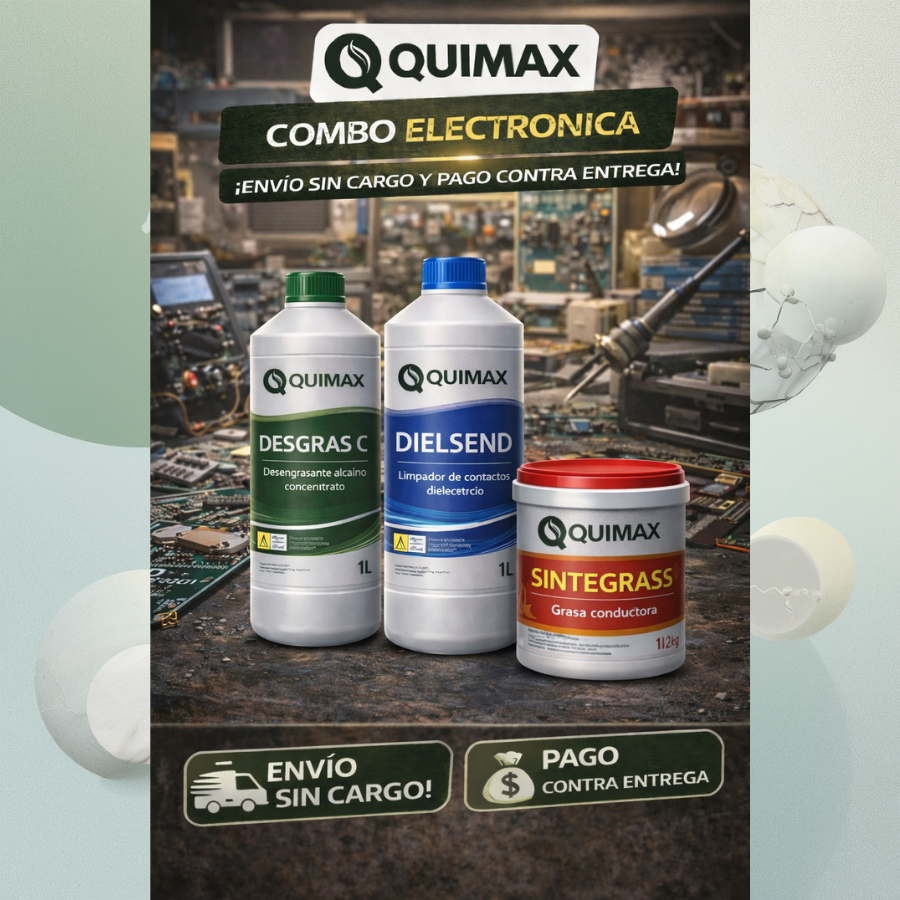 Asegurá el funcionamiento perfecto de tus equipos y tableros con el Combo Electrónica de QUIMAX. Tres productos técnicos diseñados para limpiar, proteger y garantizar la máxima conductividad. 👇